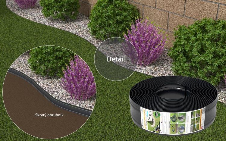 Zahradní obrubník je maximálně pružný a zároveň dostatečně tuhý, nepraská a neláme se. Snadno jej zformujete do požadovaného tvaru. To Vám dává svobodu k vytvoření oblouků a křivek podle Vašich představ. Obrubník zamezí prorůstání trávy a oddělí dva povrchy. Můžete ho přejíždět rotační sekačkou a strunovou osekávat.